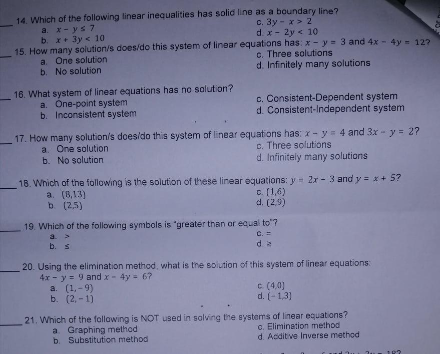 Your email address will not be published. Y 2x 4 y 2x 1 b. Correct answer - Which system of inequalities has no solution.
